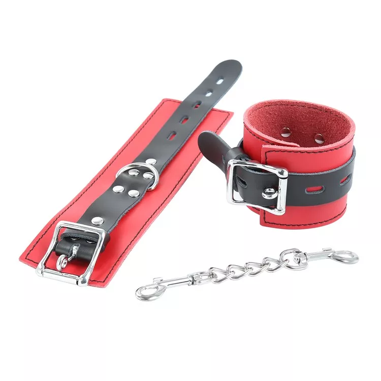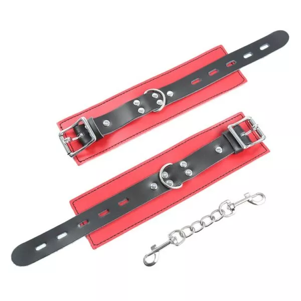אזיקי ידיים מעור באדום/שחור עם אבזמים
