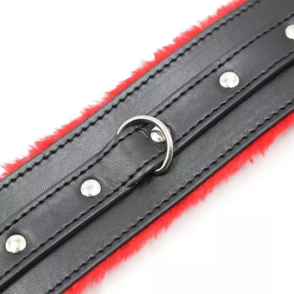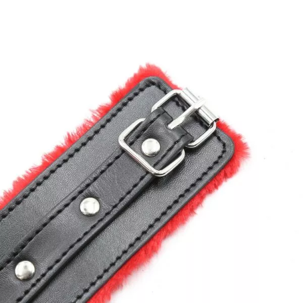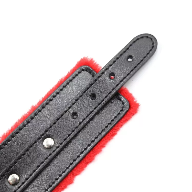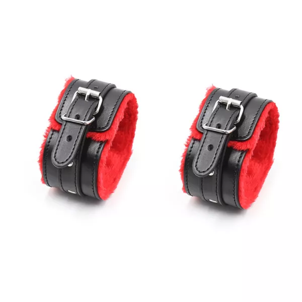 אזיקי ידיים שחורים עם פרווה אדומה ואבזמים