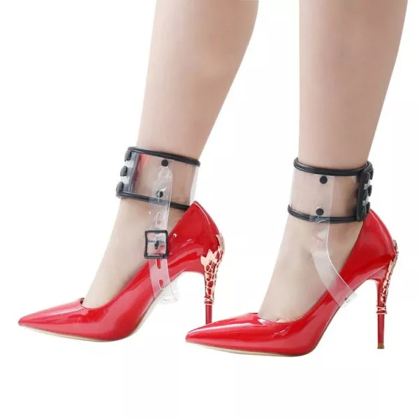 גאים להציג את אזיקי הרגליים השקופים המשולבים באבזמי מתכת שחורים. הם מביאים איתם אוירה של פופ ארט מודרני ומרהיב.