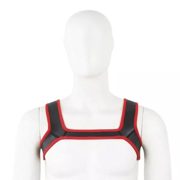 רתמות נאופרן אלה, המוצגות בתמונה, נלבשות על הטורסו העליון של הגבר ומעניקות מראה אלגנטי ומחמיא. נאופרן, גומי סינטטי רך ואלסטי, מתיישב בצורה מושלמת על הגוף ומחמיא למבנה השרירים, והופך את הלבישה וההסרה לפשוטה ונוחה כמו חולצה.
