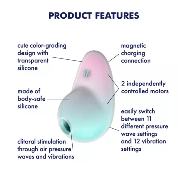 עיצובו של Pixie Dust מעוקל ומזמין, כמו של קסם שהגיע הישר מתוך היער הפיות. הוא מתלבש בנוחות בכף ידך ומציע מגע קטיפתי, מתלטף ונעים בזכות 2 שכבות של סיליקון איכותי וידידותי לגוף. זהו לא רק עיצוב ייחודי ומהפנט – זהו מוצר המשלב טכנולוגיה מתקדמת עם חוויות מרגשות.
