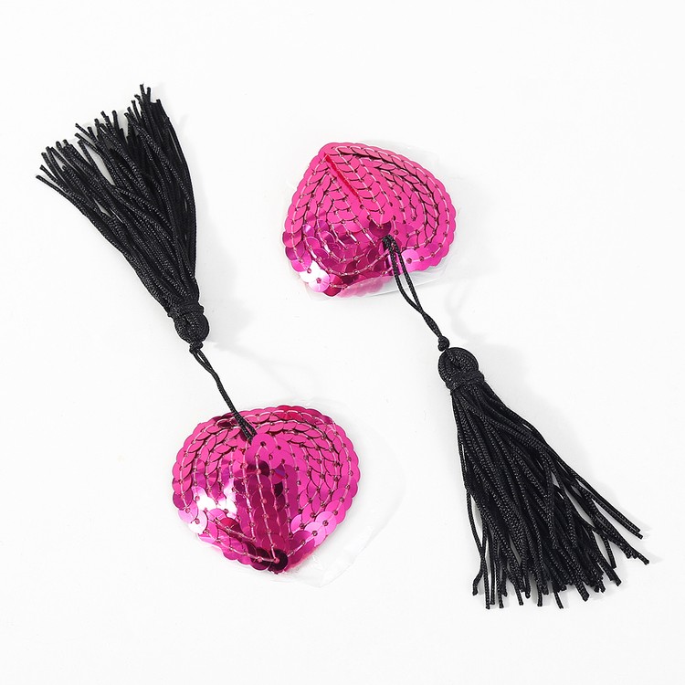 כיסוי פטמות חושני בצורת לב – פייטים ורודים עם פרנזים שובבים!
