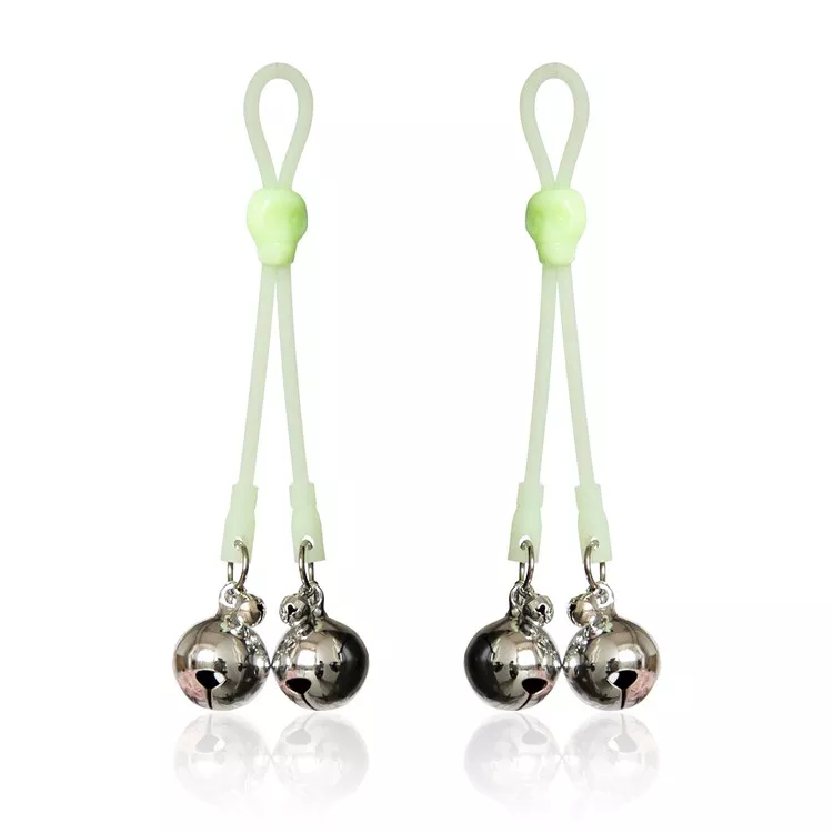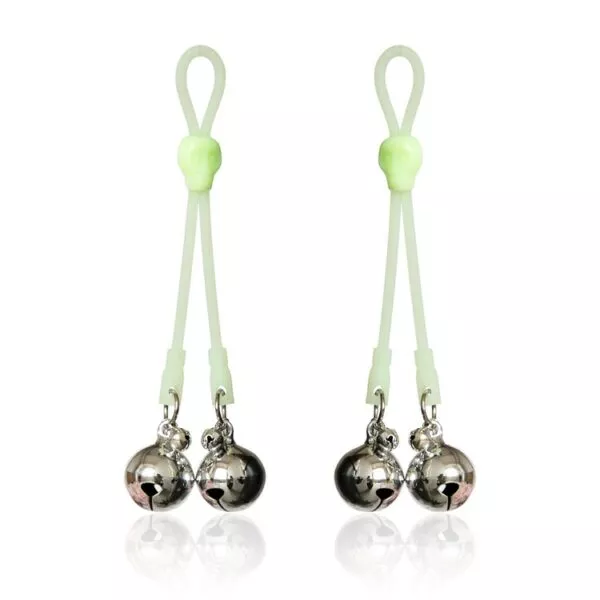 מצבטי פטמות זוהרים בחושך עם פעמונים: חוויה ייחודית לחובבי קינק ופטיש. תלו אותם על הפטמות בחבל תלייה לשליטה מושלמת בכאב ולחץ. מתאימים למשחקי שליטה ו-BDSM, מעלים את הריגוש הארוטי והחושני בחדר המיטות. מושלמים למתחילות ומנוסות, ולמסיבות פטיש ו-BDSM. הפעמונים בכל מצבט משמיעים צליל נעים, מוסיפים סקסיות ועומק לסשן. הזוהר בחושך מדגיש את נוכחותם ומוסיף נגיעה מיוחדת.