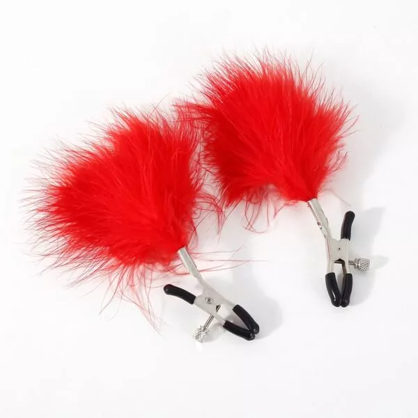 מצבטי פטמות מתכווננים עם נוצה – משחק חושני של עונג ושליטה!
