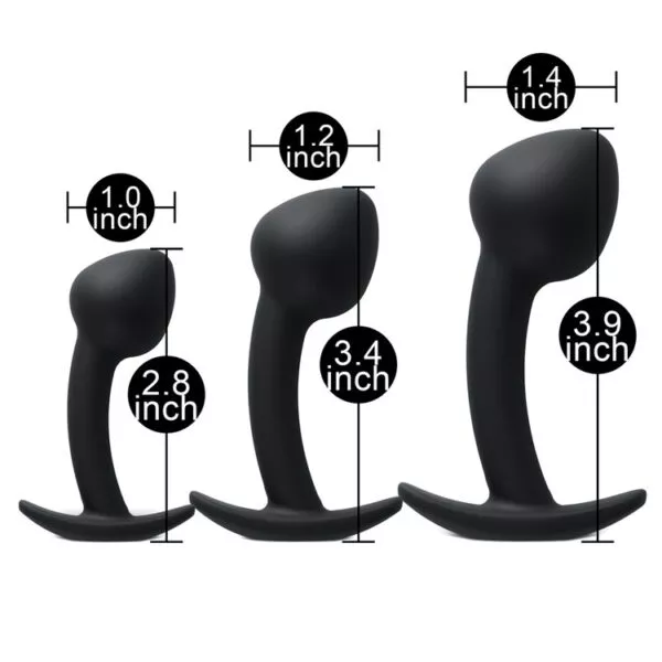 - שלושה פלאגים אנאליים בגדלים משתנים.