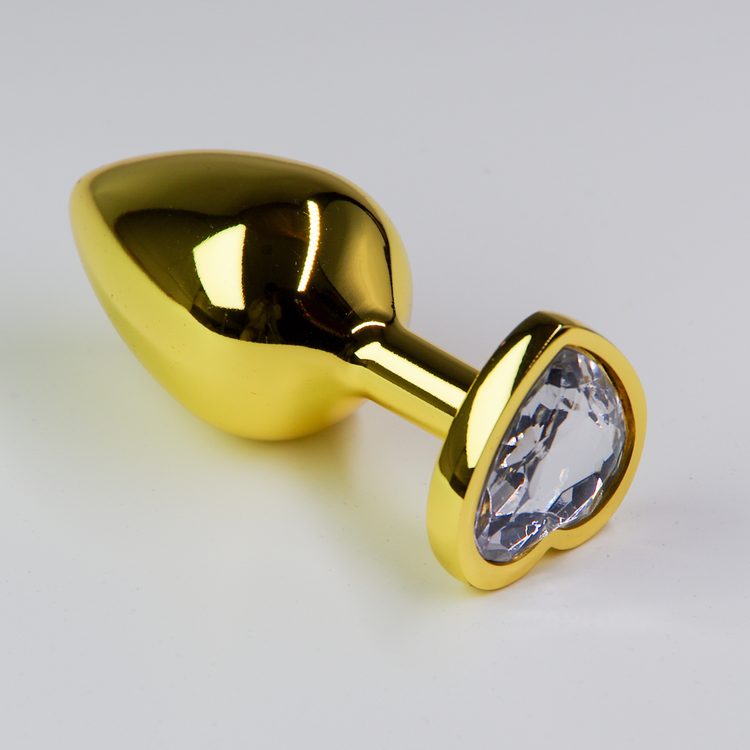 פלאג מתכת זהובה יהלום לב שקוף – גדול / 41.5 מ"מ