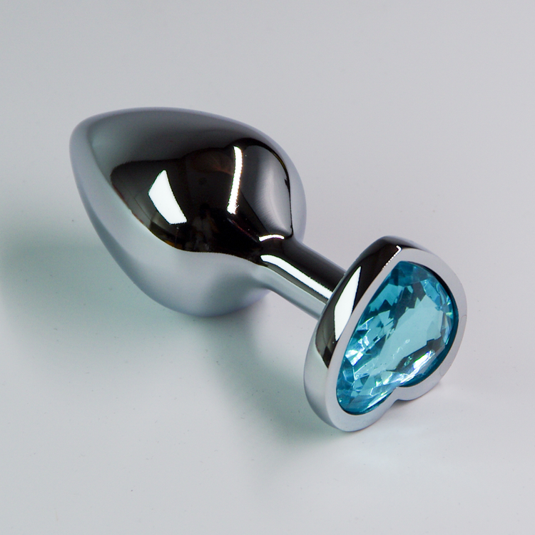 פלאג מתכת כסוף עם יהלום לב בצבע כחול אקווה