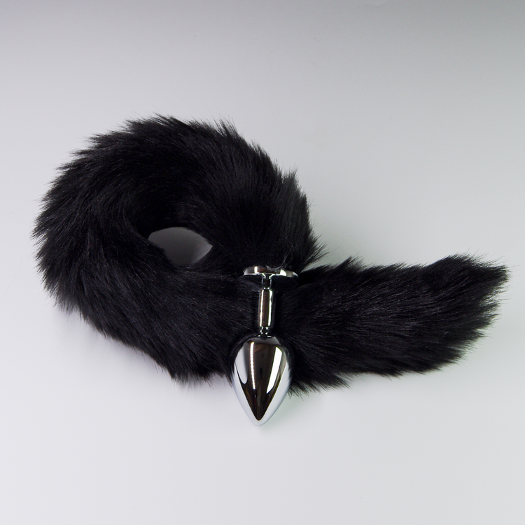 לבסיס הפלאג מחובר זנב שועל עשוי פרווה סינתטית שחורה. הזנב רך למגע, באורך מרשים ובעל מראה דרמטי.
