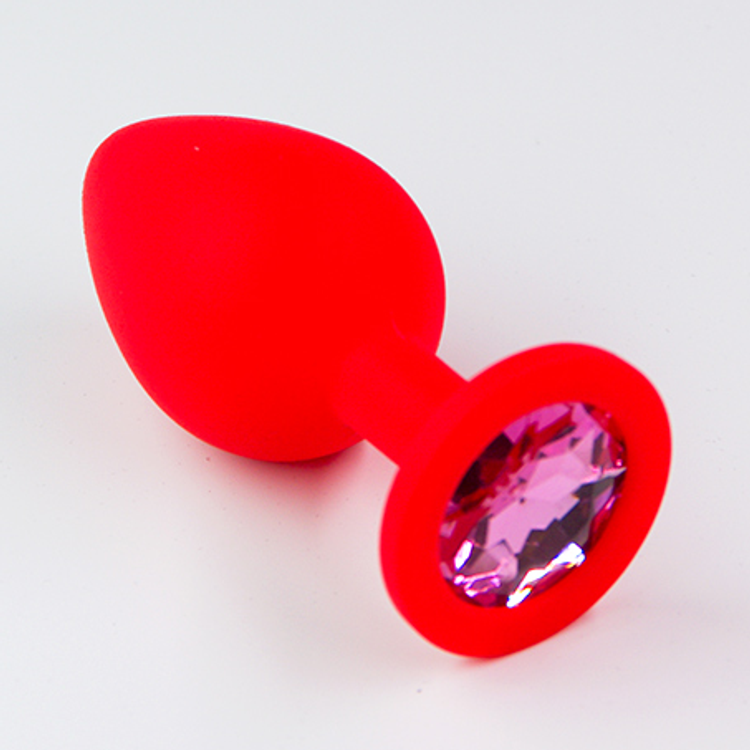 פלאג סיליקון אדום גדול עם יהלום ורוד – סדרת Plug & Play של ToyBox