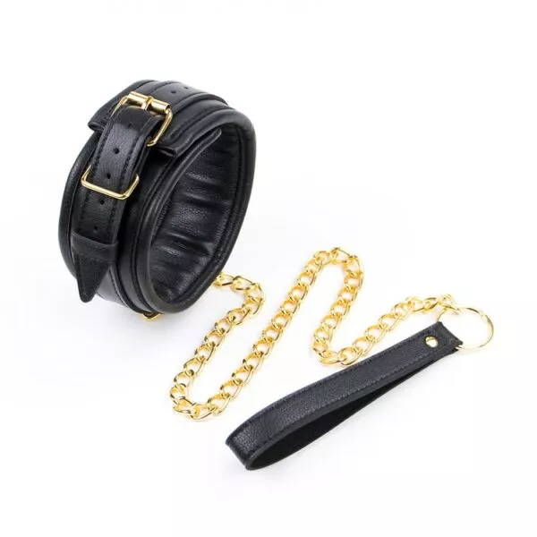 קולר מרופד עם אבזם ורצועת מתכת זהב