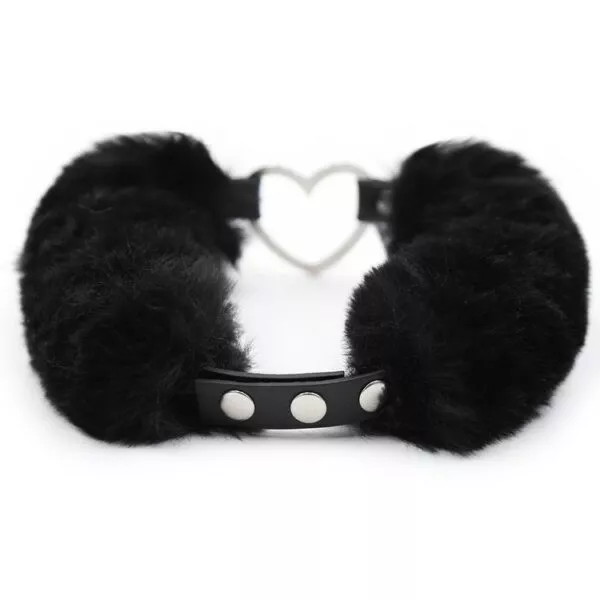 הקולר בעל גימור שחור פרוותי, נעים למגע ומוסיף נגיעה של יוקרה ופינוק. האבזם המתכתי בצורת לב, הנפתח ונסגר בקלות באמצעות לחצנים, מוסיף אלמנט של רומנטיקה ואישיות. קוטר טבעת הלב הוא כ-4 ס"מ, מה שמדגיש את העיצוב הייחודי והאהבה המתבטאת בכל פרט.