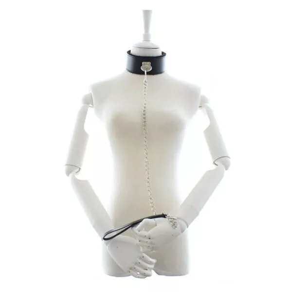 האבזם המתכת הכסופה והרצועה הולכה השחורה עם הידית המותאמת מעניקים לקולר מראה יוקרתי ופונקציונלי. טבעת ה-D מציעה גמישות וסטייל.