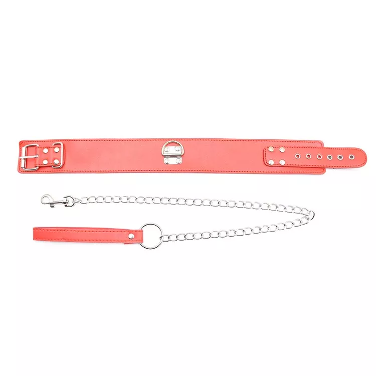 קולר דמוי עור בצבע אדום, המשדר נוכחות וסגנון. מאופיין בסגירת אבזמים ממתכת איכותית וטבעת D מעוצבת, המשלבת פרקטיות ואסתטיקה.