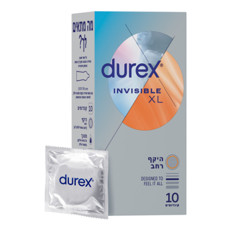 קונדומים XL INVISIBLE מעוצבים להעצמת הרגישות בטיחות והגנה. מידה גדולה יותר מקונדומי INVISIBLE