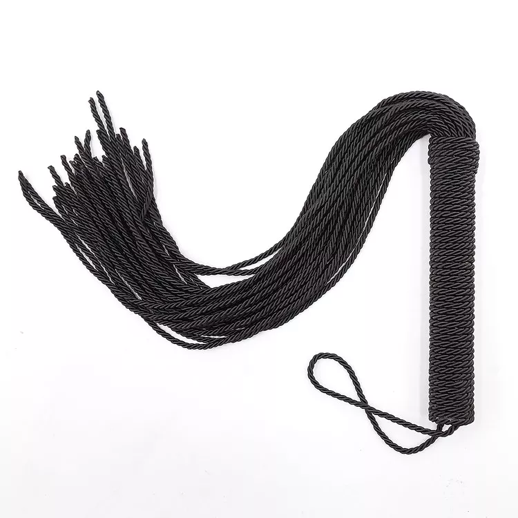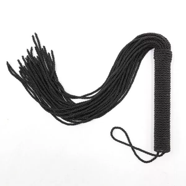 שוט זנבות עשוי מחבלים, באורך כולל של 50 ס"מ, מושלם למשחקי שליטה ו-BDSM. השוט מצויד בידית שחורה, מצופה עור, באורך של כ-15.5 ס"מ, המעניקה אחיזה נוחה ואלגנטית.