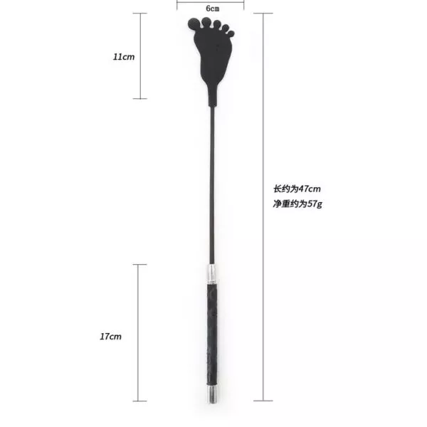 בואו לחוות חושניות ועוצמה במשחקי השליטה וה-BDSM עם שוט רכיבה וחבטה סקסי ומעוצב. שוט זה מציע מחבט בצורת כף רגל שחורה, עשוי מסיליקון, וידית אחיזה שחורה עם גימורי כסף, ומתאים למשחקי ריסון, חינוך ושליטה.